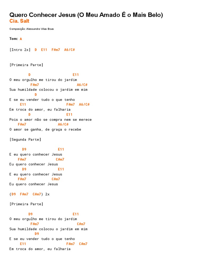 Salt quero conhecer jesus mp3 postado por louvores em 08/11/2017, e que já está com 138.157 downloads e 83.252 plays! Eu quero conhecer jesus eu quero conhercer jesus. Eu quero conhecer jesus e ser achado nele. Aprenda a tocar essa música usando as cifras, tablaturas e versão simplificada com o cifras. Posted 1 year ago1 year ago.